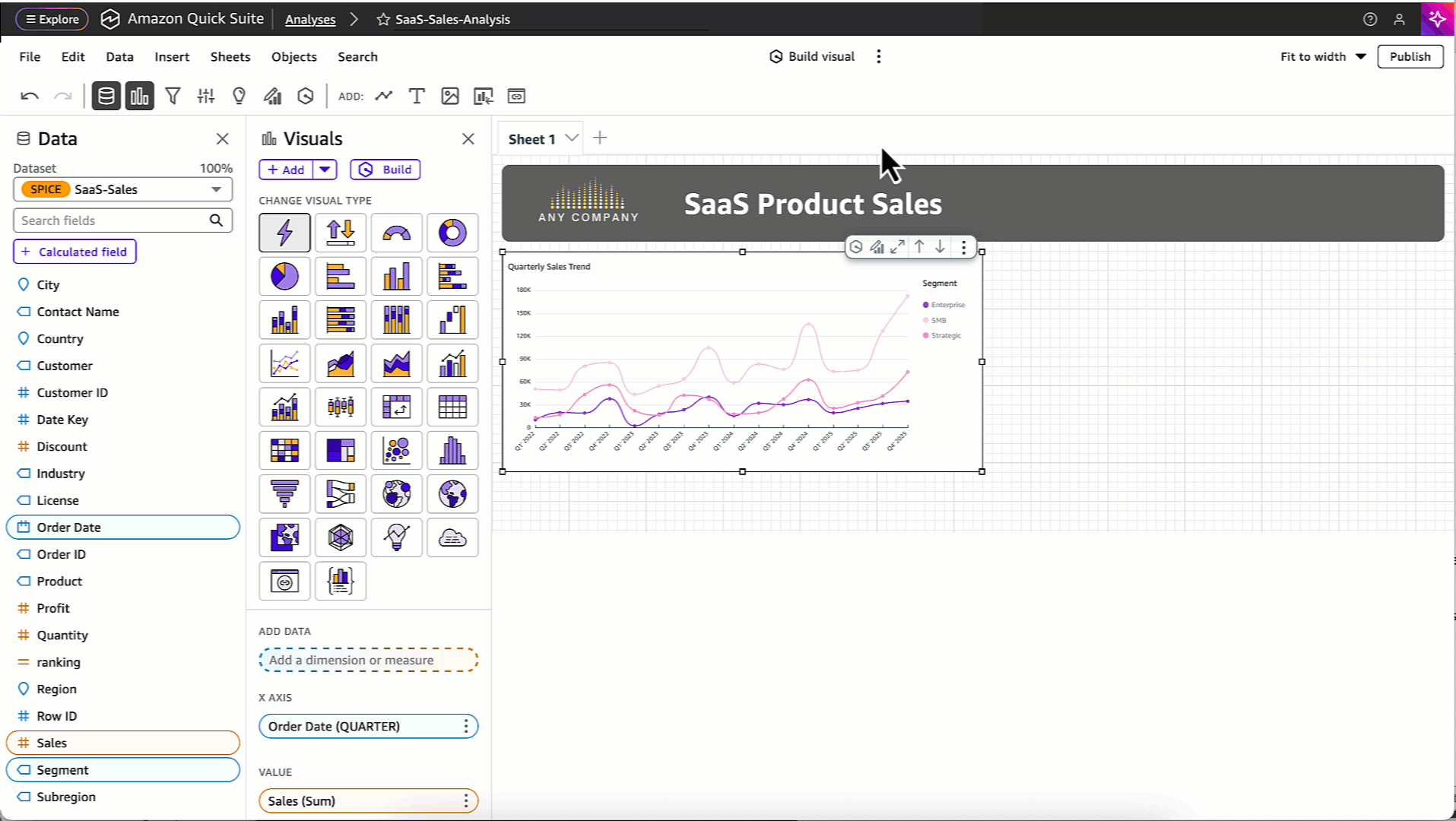 Quick Sight lo ayuda a hacer preguntas sobre sus datos en lenguaje natural y recibir visualizaciones instantáneas, resúmenes ejecutivos e información valiosa. Esta integración generativa de IA le brinda respuestas desde sus paneles y conjuntos de datos sin requerir experiencia técnica.