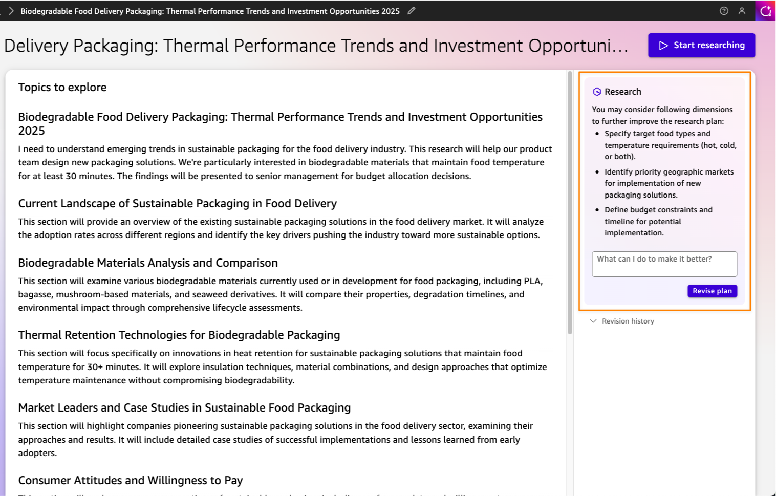 Después de que Quick Research cree el plan, podrá perfeccionarlo fácilmente mediante conversaciones en lenguaje natural. Cuando esté satisfecho con el plan, funcionará en segundo plano para recopilar información de múltiples fuentes, utilizando razonamiento avanzado para validar los hallazgos y proporcionar un análisis exhaustivo con citas.