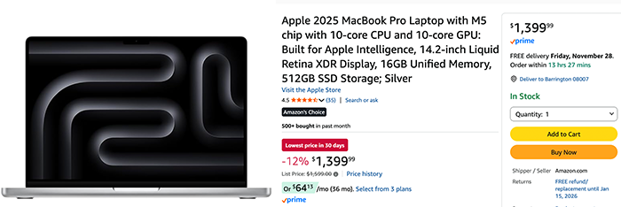 El precio más bajo jamás visto en esta NUEVA computadora portátil MacBook Pro Apple 2025 vendida por Amazonas (Haga clic aquí).
