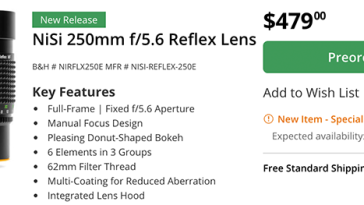 in Fotografía El objetivo réflex NiSi 250 mm f/5,6 ya está disponible para pedidos anticipados en BH/Adorama