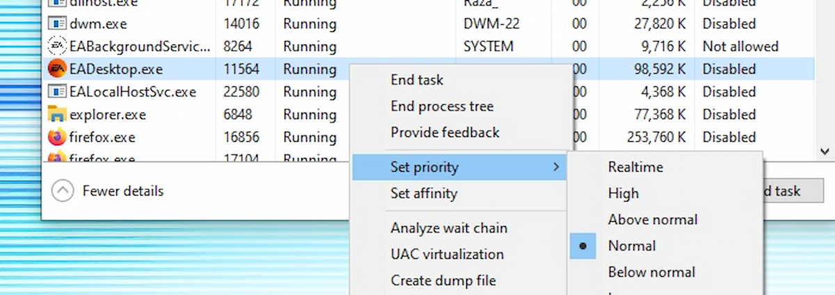 Una vez que el Administrador de tareas esté abierto, dirígete a la pestaña Detallesy busque el programa que está utilizando. Una vez que haya encontrado el programa, haga clic con el botón derecho y seleccione Prioridad, luego haga clic en Alta.