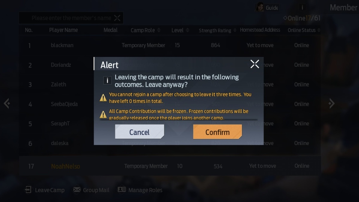 Aparecerá una ventana pidiéndole que confirme. Solo puedes salir y volver a unirte a un campamento tres veces. hasta que esté permanentemente baneado, además todas sus contribuciones serán congeladas.