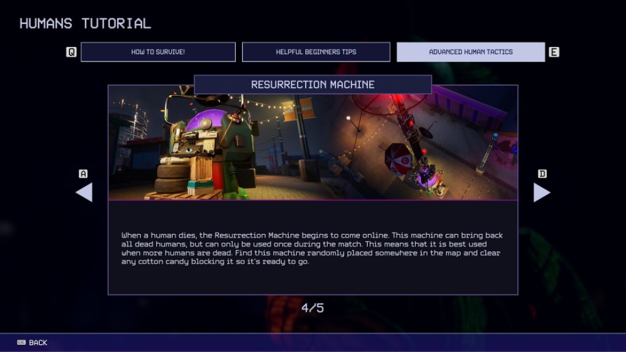 La máquina de resurrección se activa poco después de que muera el primer humano durante un partido de Killer Klowns from Outer Space. Cada jugador en el lobby recibirá una ventana emergente. notificación informándoles que la máquina se ha encendido, pero no debes apresurarte hacia ella una vez activada. ya que puede Sólo se puede utilizar una vez por partido.lo mejor es salvar la máquina de resurrección hasta que la mayoría de los humanos de la ronda hayan sido asesinados por los Payasos.