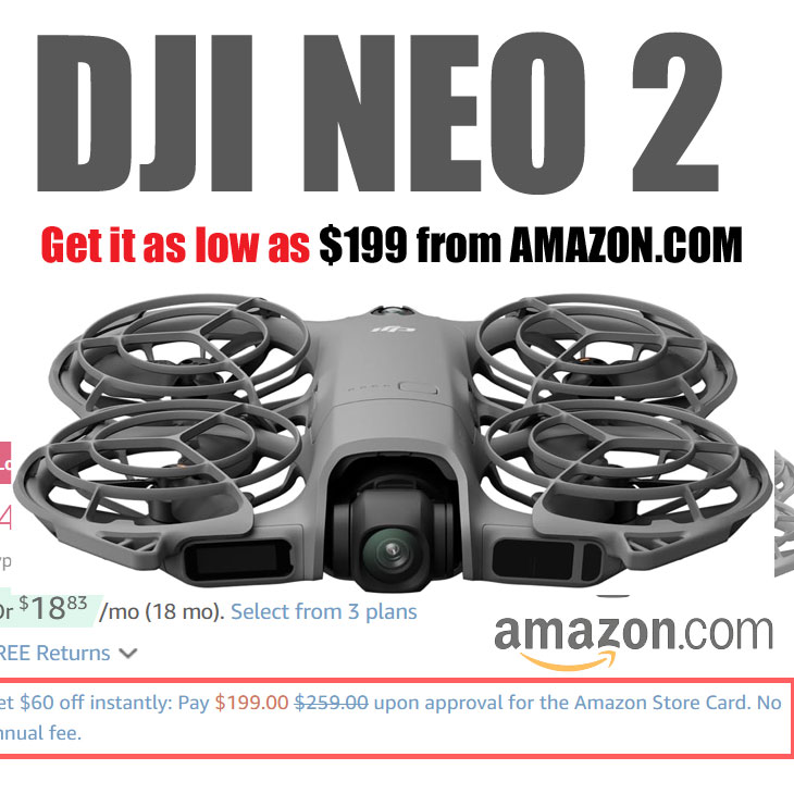 - Desbloquee Instant Off con la tarjeta de la tienda de Amazon: En la página de pedidos de DJI Neo 2, tienes que seleccionar «Obtenga ahorros instantáneos: pague $239 al momento de la aprobación». A través del enlace, tienes que solicitar el sin tarifa anual Tarjeta de tienda Amazon – lo que significa que es completamente gratis y, ¿adivinen qué?, decisión instantánea y, si se aprueba, boom: $199 en total. (Incluso si se le niega, aún obtendrá la base de $ 259 con envío Prime gratuito. Aún obtendrá un descuento del 48 % sobre el MSRP.