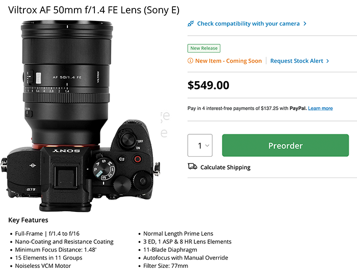 El nuevo objetivo Viltrox 50mm f/1.4 PRO ya está disponible para pedidos anticipados en BHfoto, Amazonas, Viltrox, Pergear.