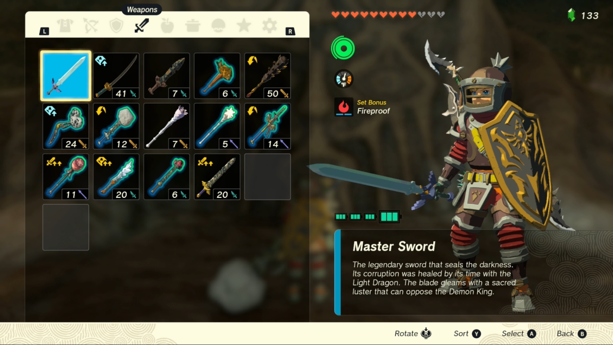 La mejor arma del juego es la Espada Maestra. Una vez que lo adquieres (después de su horrible desempeño en el prólogo), no puede romperse. Puedes piratear lo que quieras y eventualmente entrará en un período de enfriamiento, pero lo recuperarás en poco tiempo. Inflige un daño razonable, lo que lo convierte en una buena opción en la mayoría de las batallas, pero su durabilidad poco común es su mayor atributo. Aunque la búsqueda que te dirige a adquirir la Espada Maestra llega tarde en la campaña del juego, puedes hacerlo antes. No seas como yo y espera hasta que hayas limpiado todos los templos antes de localizar al Dragón de Luz.