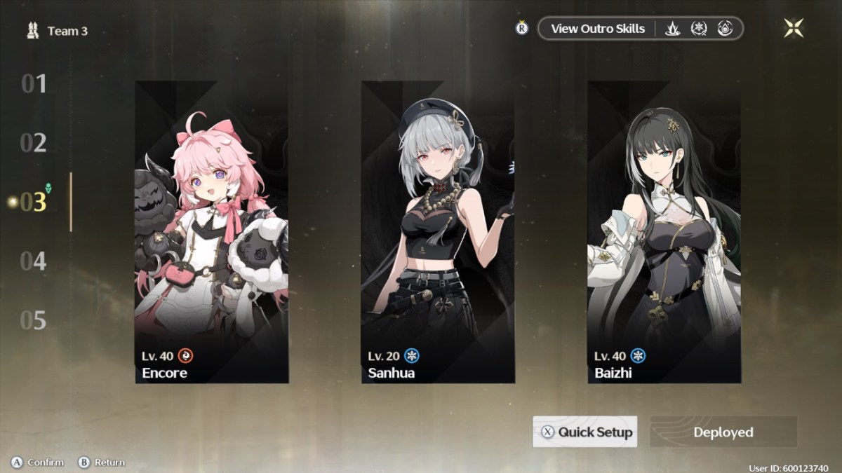 Mientras Recomiendo tener un sanador en tu escuadrón. como Verina o Baizhi, probablemente podrás llenar el espacio restante con quien quieras. Rover es decente si quieres correr como el personaje principal.