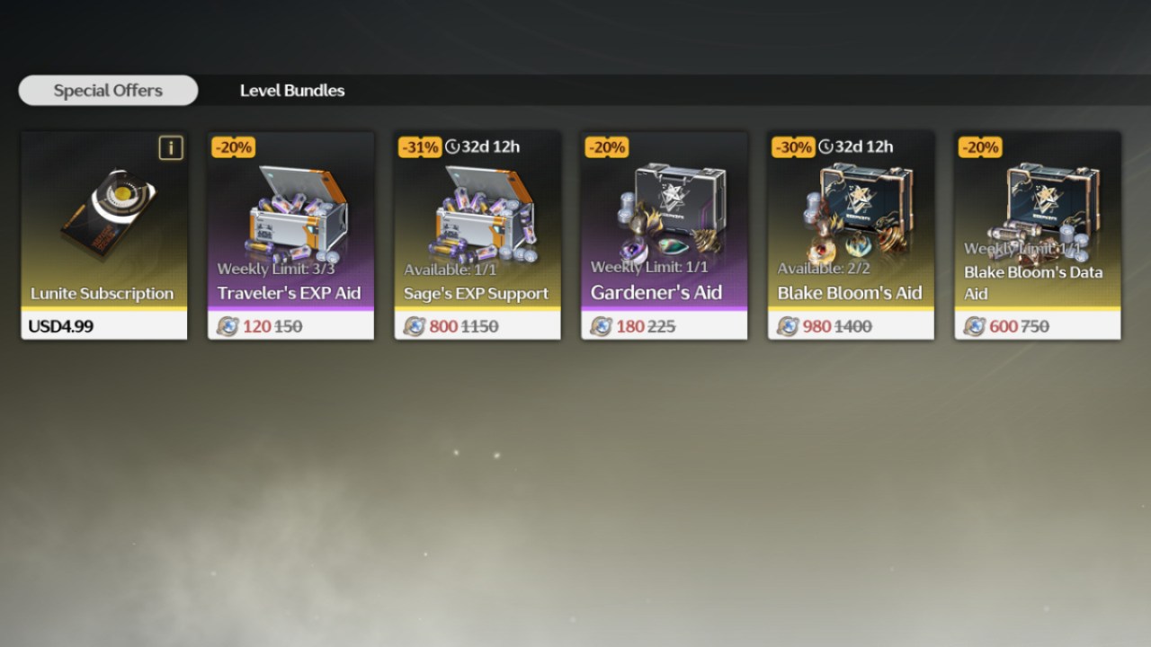 Hay cinco paquetes de tienda disponibles para su compra en la sección de Ofertas especiales de la tienda Wuthering Waves.