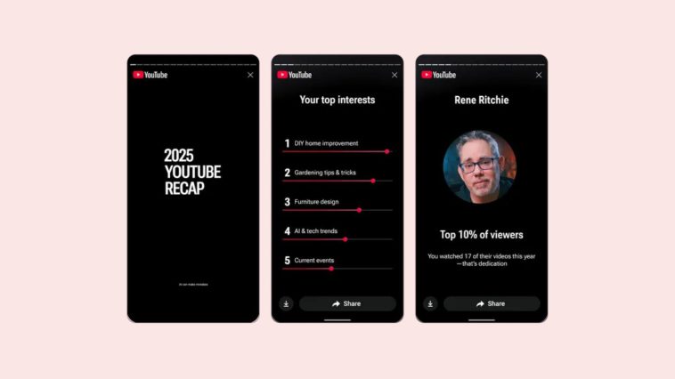 YouTube Recap estará disponible a partir de hoy para usuarios de EE. UU. y Canadá, y se lanzará en otros países esta semana. Se puede acceder a él a través de la página de inicio de YouTube en la web o tocando la pestaña «Tú» en la aplicación para iOS o Android.