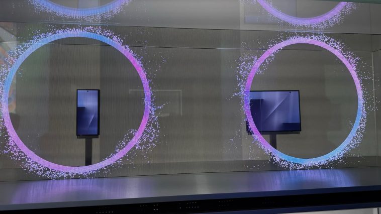 Samsung mostró el teléfono inteligente triple en APEC 2025 Corea. El dispositivo está diseñado para transformarse de un teléfono inteligente de ~6,5 pulgadas a una pantalla estilo tableta de ~10 pulgadas. Se doblará dos veces, en lugar de solo una vez como los teléfonos inteligentes Galaxy Fold estándar.
