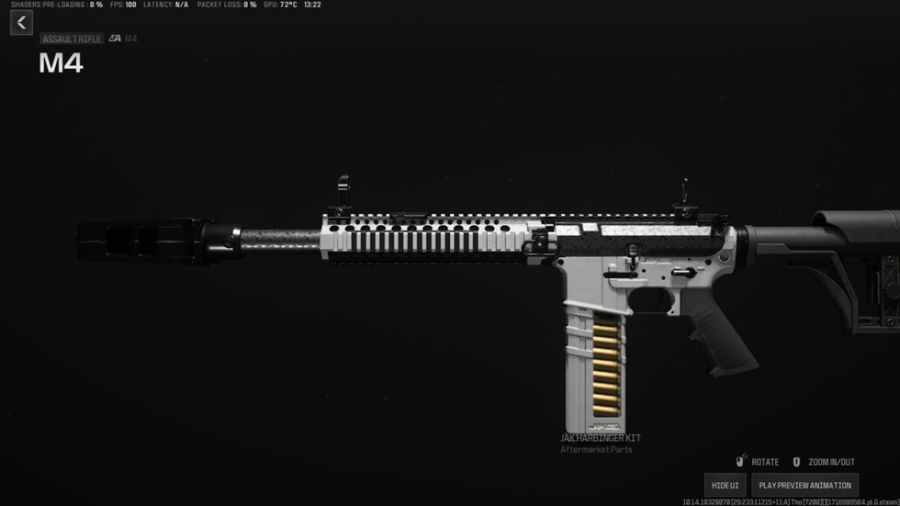 Esta es una pieza obscena de JAK Aftermarket para Modern Warfare 3. Te permite colocar el M4 en rondas de calibre .50, lo que reduce la velocidad de disparo pero lanza misiles absolutos. Espere un retroceso que le volará el hombro. Puedes desbloquearlo completando cinco desafíos de la Semana 1 de la Temporada 4 de MW3.